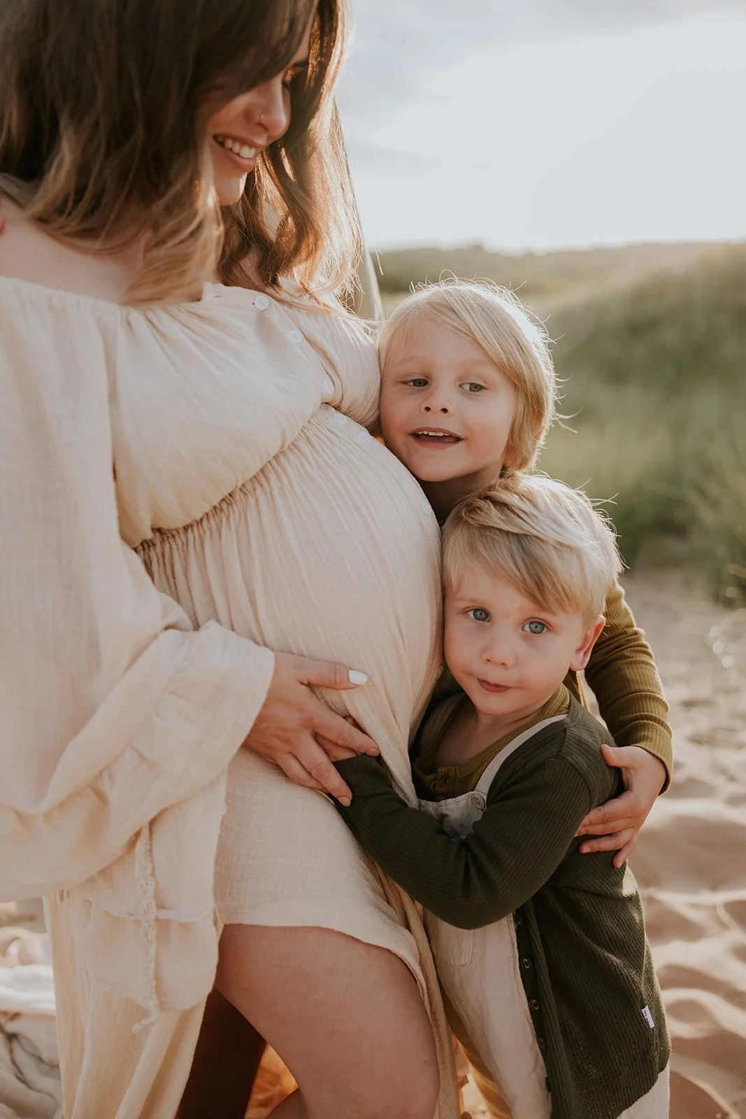 Our session will unfold gently, with no strict timelines or pressure. At-home shoots are perfect for soaking in those tender, fleeting moments — the newborn yawns, the cuddles, the calm (and the chaos). Outdoor maternity sessions can be as bold or understated as you like, with nature as your backdrop and your connection front and centre.